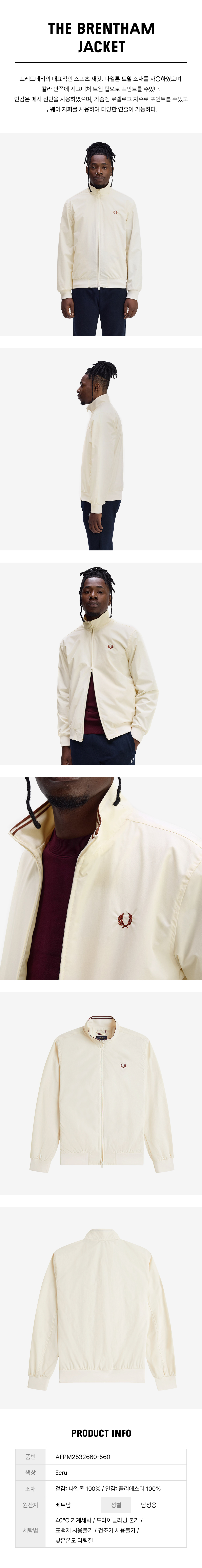 프레드페리 브렌댐 재킷 에크루