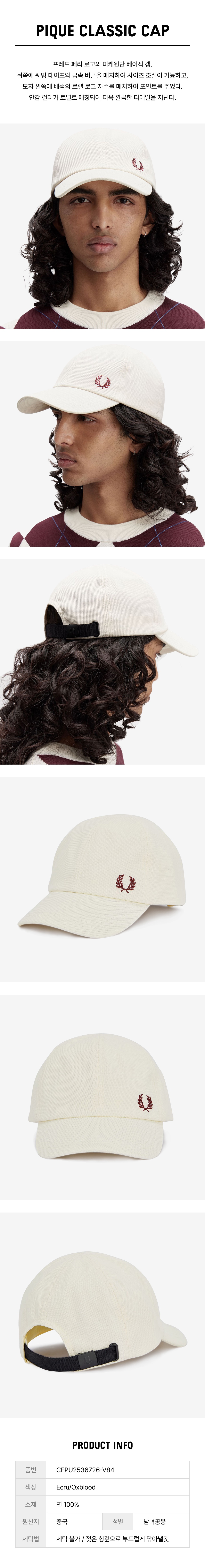 프레드페리 피케 클래식 캡 에크루 옥스블러드
