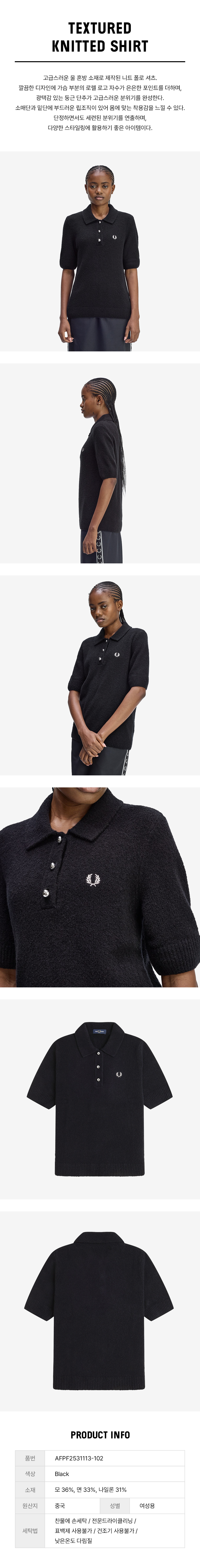 프레드페리 우먼스 텍스쳐드 니트 셔츠 블랙