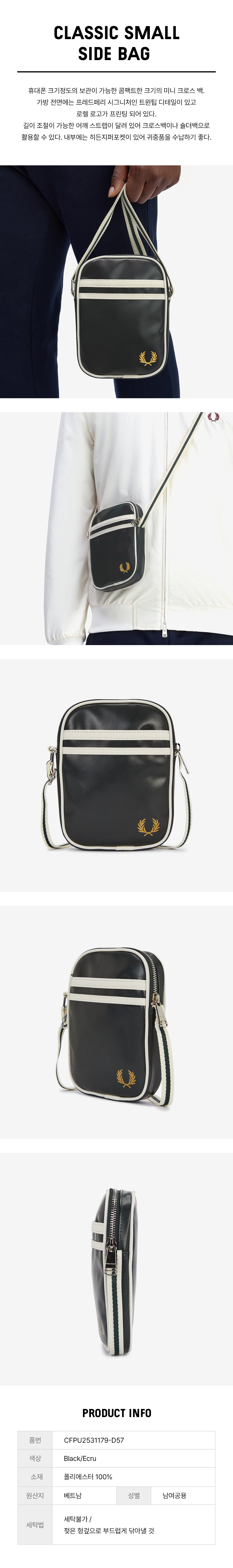프레드페리 클래식 스몰 사이드 백 블랙 에크루