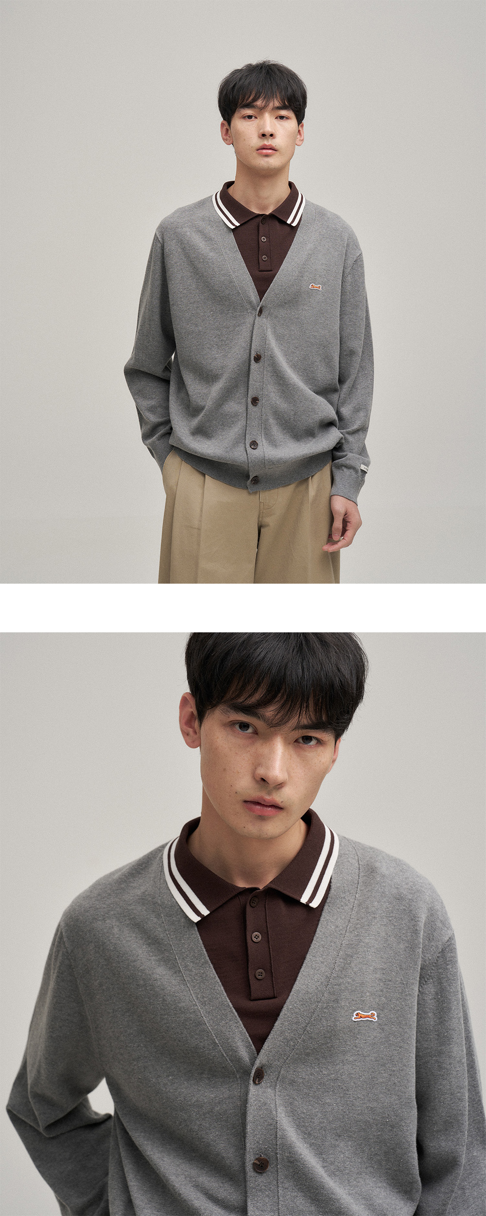 르티그레 클래식 브이넥 가디건 헤더 그레이
