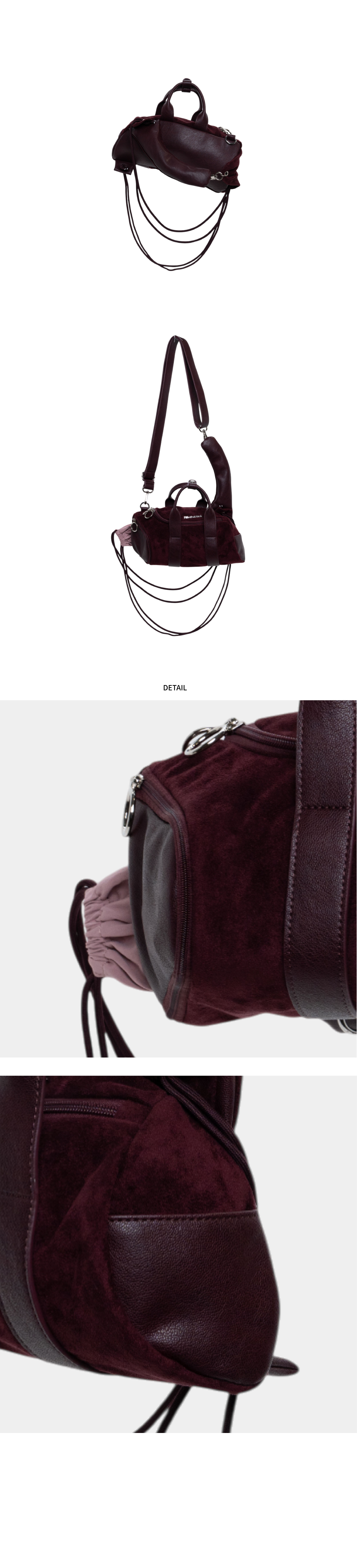 뮤지션들이 사용하는 긱 백에서 영감을 받은 3-way백 - 토트, 숄더, 백팩 등 다양한 스타일링이 가능한 디자인 - 부드러운 스웨이드 및 가죽 소재 배색 - 두 가지로 분리된 수납공간으로 다양하게 활용이 가능