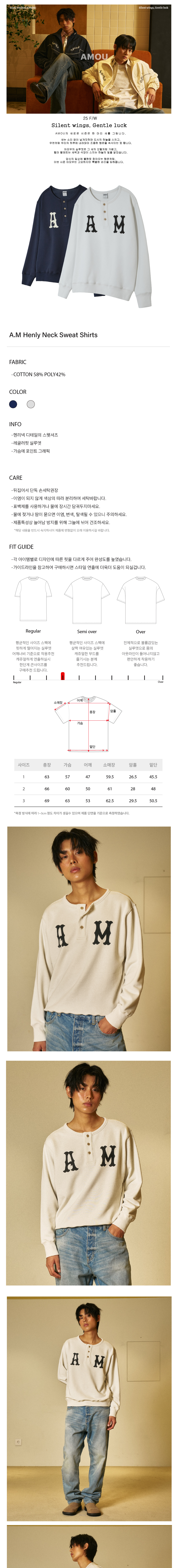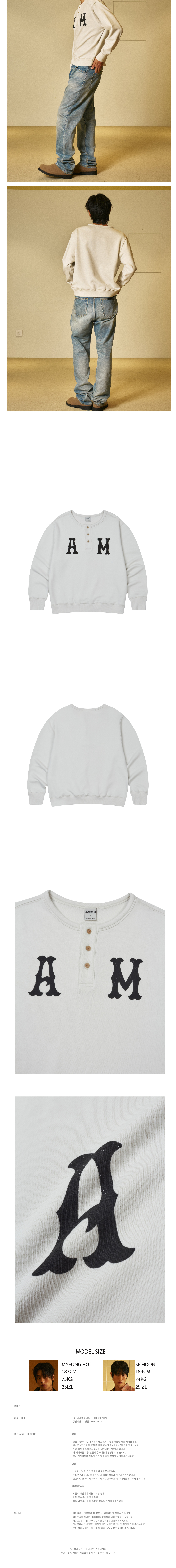 아모우 에이엠 헨리넥 스웨트 셔츠 그레이