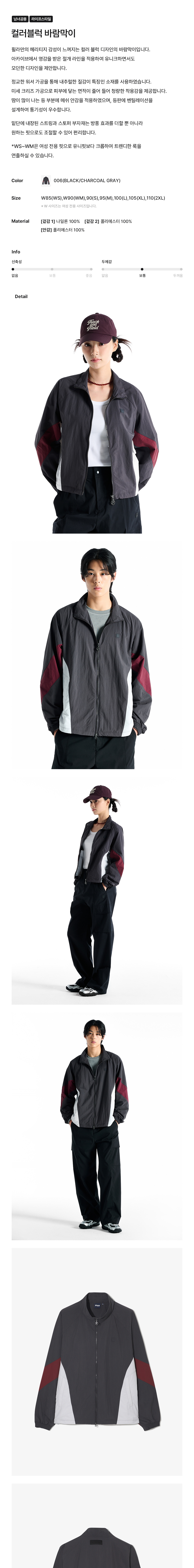 [6% 적립] [KREAM 단독] 휠라 컬러블럭 바람막이 차콜
