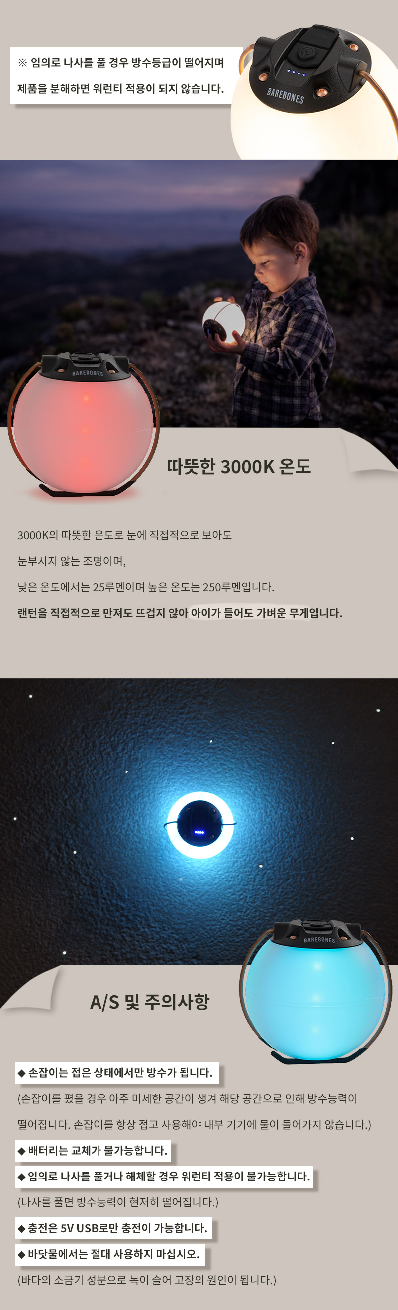 손잡이는 접은 상태에서만 방수가 가능합니다. / 배터리교체는 불가합니다 / 임의로 나사를 풀거나 해체할 경우 워런티 적용이 불가합니다.