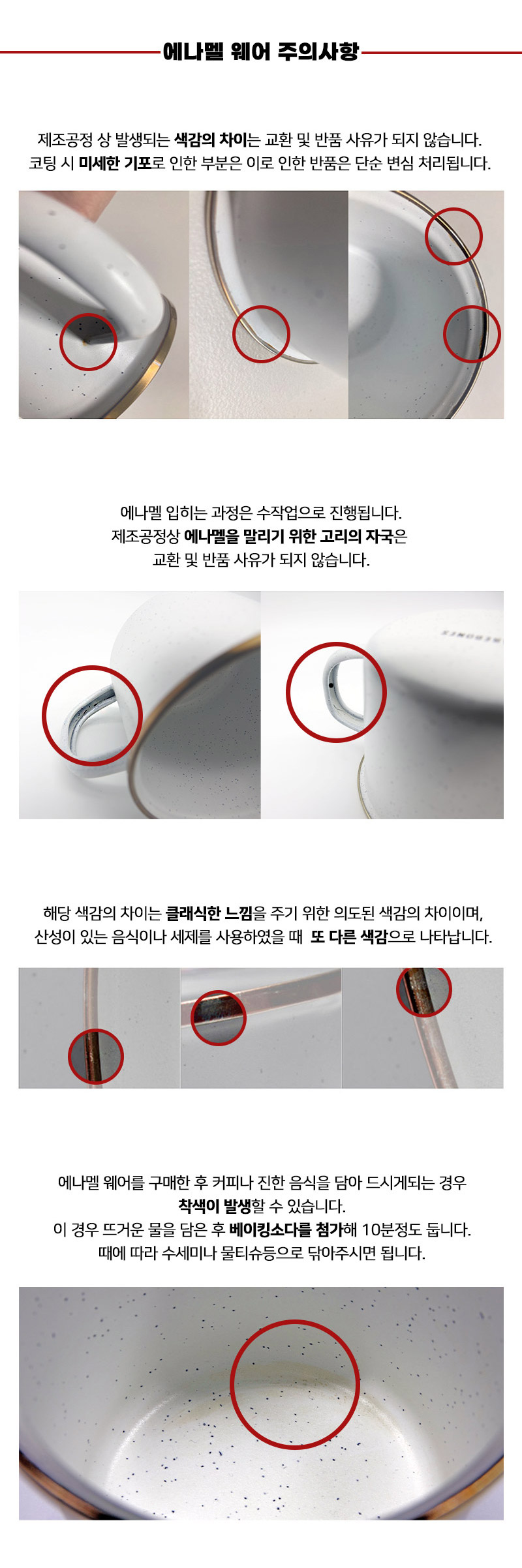 손잡이 부분에 에나멜을 말리기 위한 고리의 자국은 자연스러운 현상입니다.