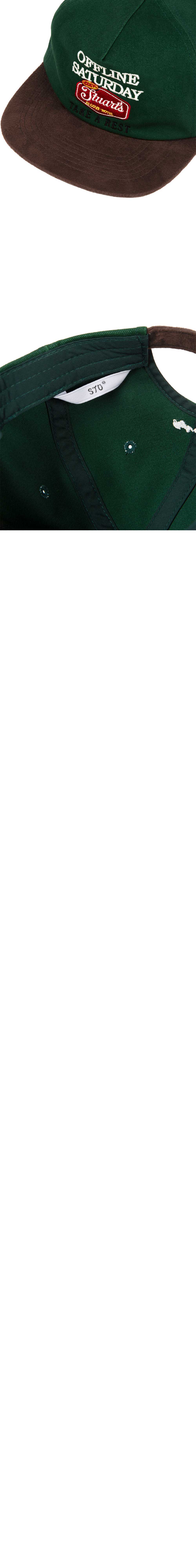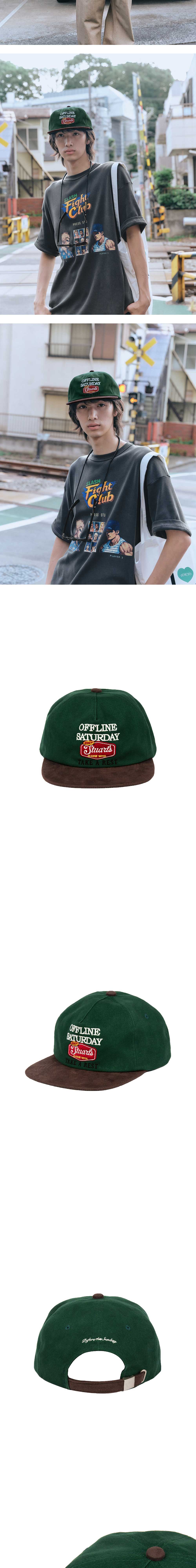 - 그린 컬러 - 스웨이드 텍스쳐 챙 - 레터링 자수 디테일 - 사이즈 조절 스트랩