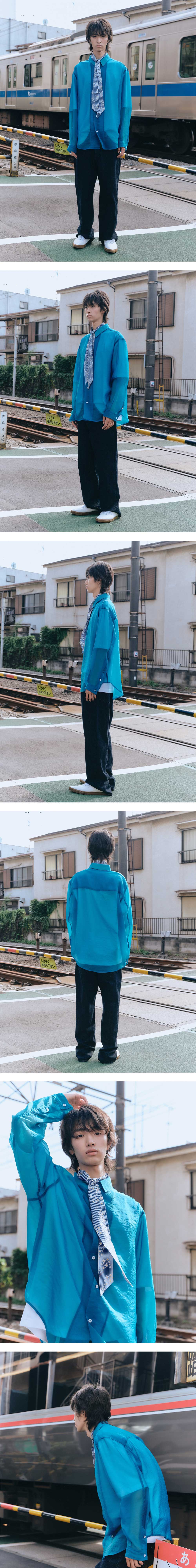 - 루즈 핏 - 블루 컬러 - 로고 각인 단추