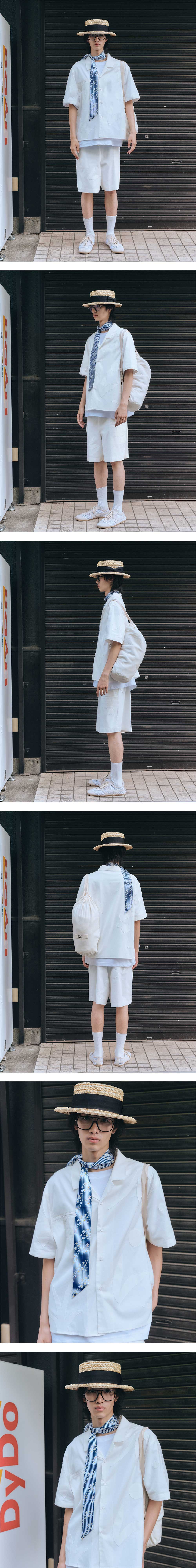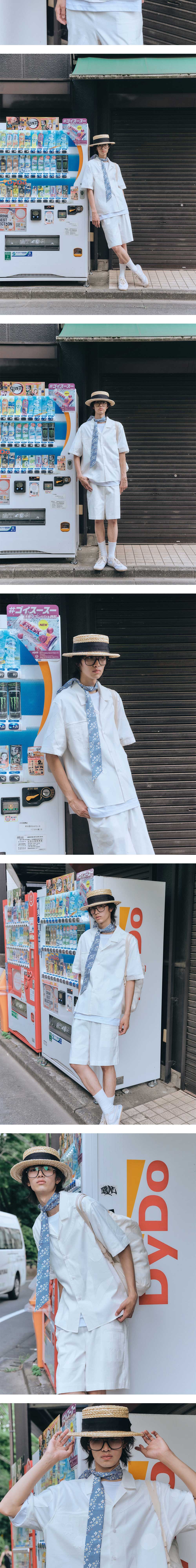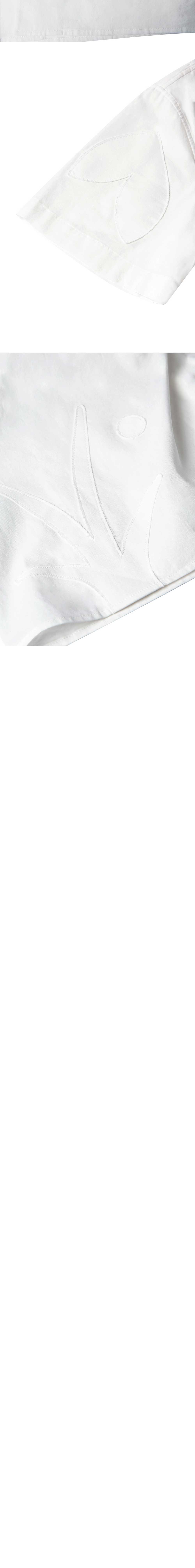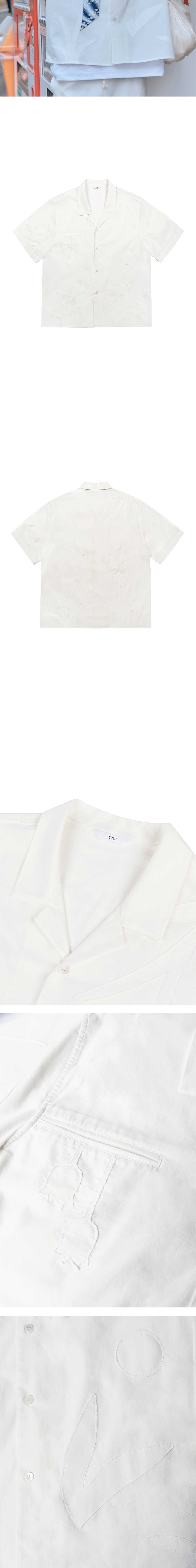 - 스탠다드 핏 - 크림 컬러 - 가든 그래픽 패치 디테일 - 체스트 포켓 디테일 - 로고 각인 단추