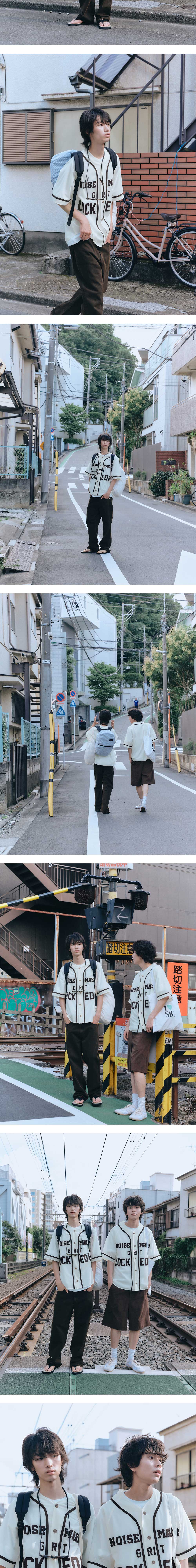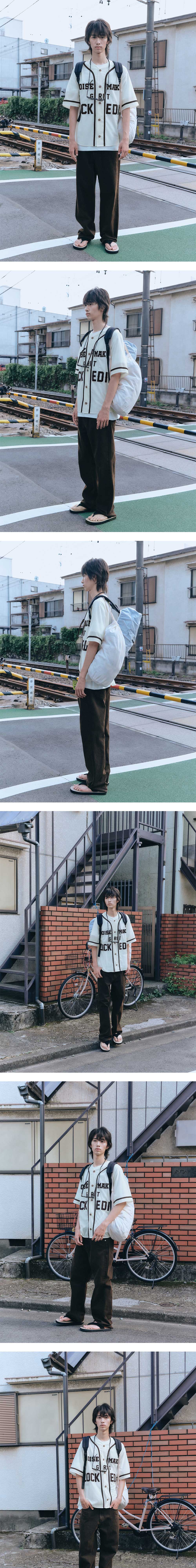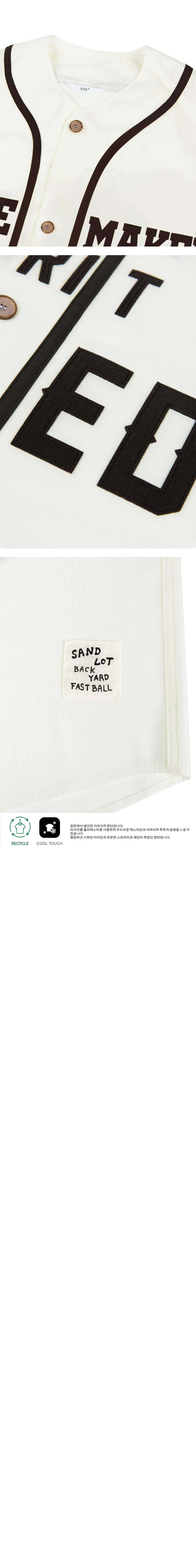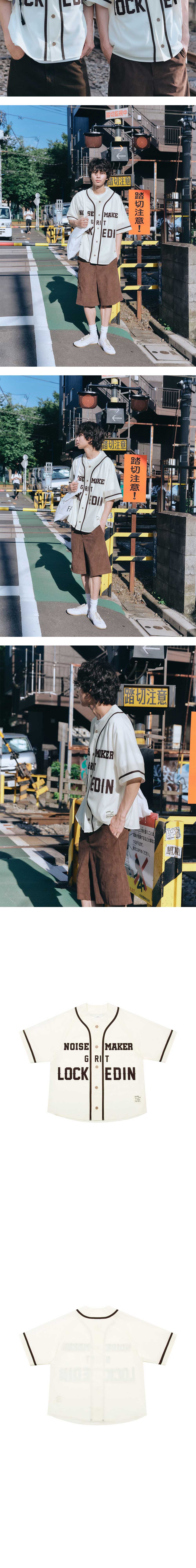 - 루즈 핏 - 아이보리 컬러 - 스트라이프 패턴 - 베이스볼 유니폼 실루엣 - 핸드 라이팅 패치 디테일 - 로고 각인 단추 * 핸드 라이팅 패치는 수작업으로 개체별 디자인 차이가 있습니다.