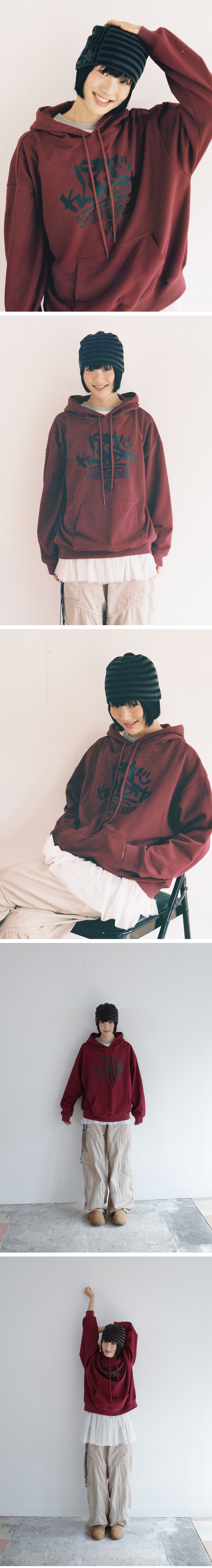 이스트쿤스트 아이케이 태그 로고 후디 버건디