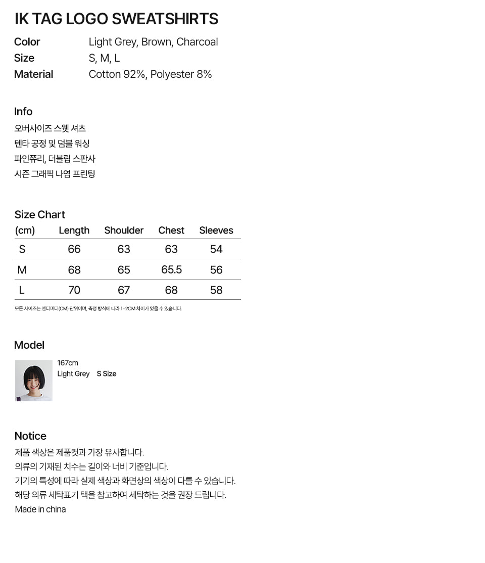 이스트쿤스트 아이케이 태그 로고 스웻셔츠 차콜
