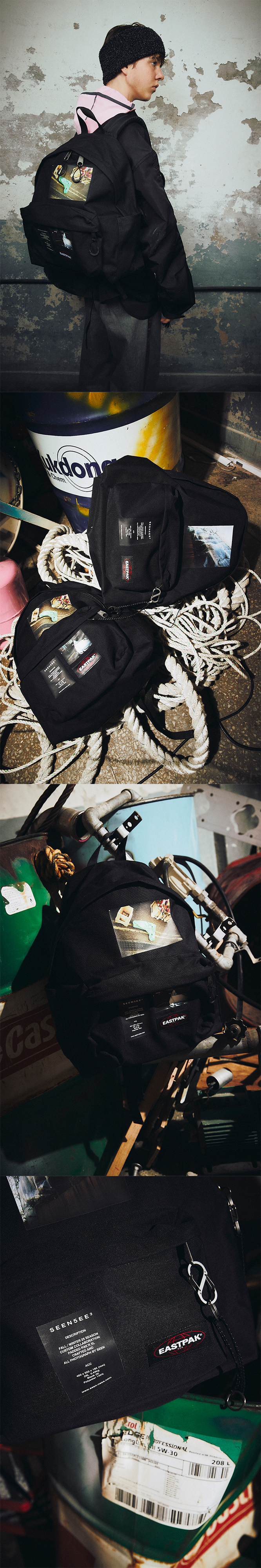 DETAIL - X EASTPAK collaboration - Up to 14” laptop - Side bottle holder - Various storage compartments - Water repellent - Easy zip puller - Photo printing COMPOSITION Polyamide 100% SIZE MEASUREMENT - Size OS : Width 30cm_Length 40cm_Side Width 18cm_Weight 0.4kg Made in S o u t h Korea WASHING INSTRUCTIONS Hand wash cold Do not bleach Do not iron Do not tumble dry Dry flat in the shade
