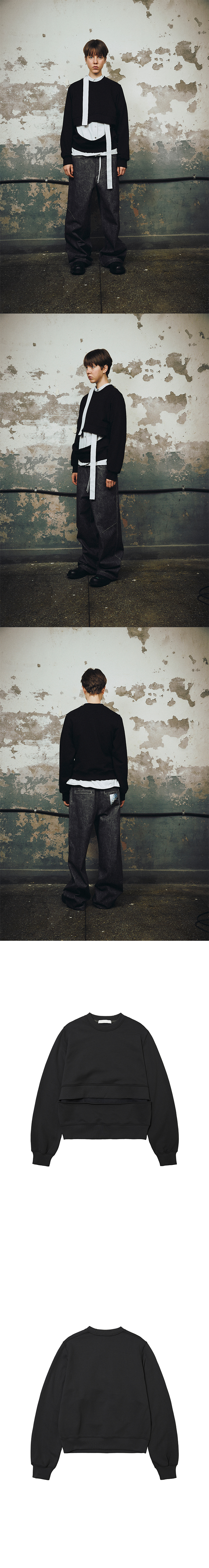 DETAIL - Standard fit - Open Cut detail - Round neck - 2-way styling for standard or cropped length COMPOSITION Cotton 65% Polyester 35% SIZE MEASUREMENT - Size OS : Length (1) 35cm (2) 52cm_ Chest 53cm_ Shoulder 41cm_ Sleeve 64cm Made in S o u t h Korea WASHING INSTRUCTIONS Dry clean recommended Hand wash cold Wash separately Do not bleach