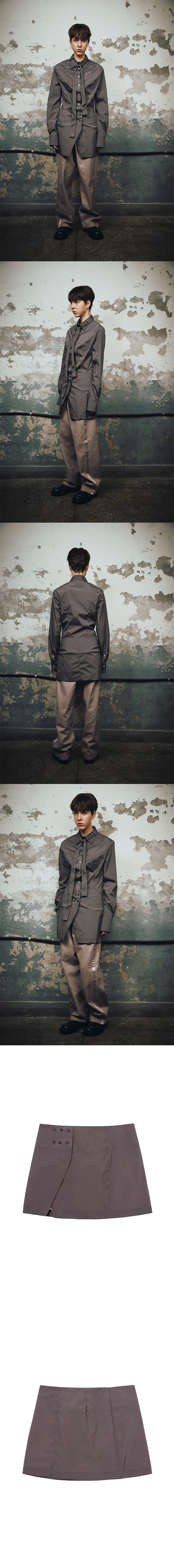 DETAIL - Wrap construction - Button closure at waistband - Full satin lining COMPOSITION - Polyamide 92% Polyurethane 8% - Lining : Polyester 100% SIZE MEASUREMENT - Size OS : Length 35cm_ Waist 36-38cm_ Hem 51cm Made in S o u t h Korea WASHING INSTRUCTIONS Dry clean recommended Hand wash cold Wash separately Do not bleach
