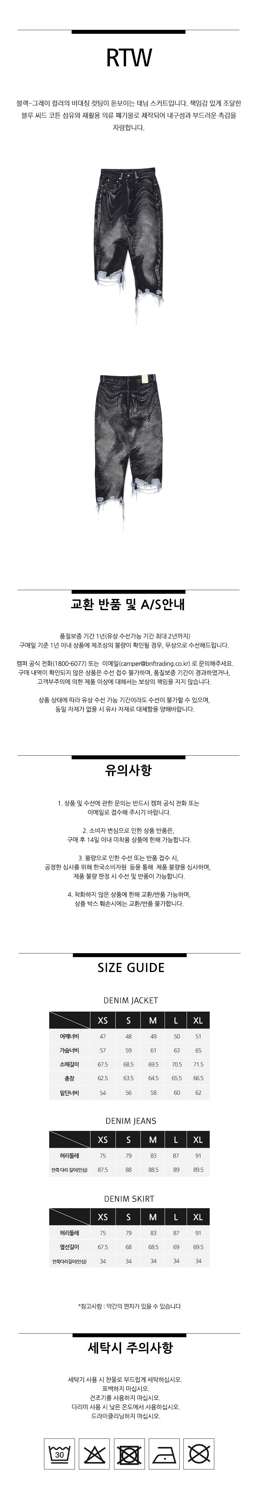 캠퍼랩 디스토티드 데님 스커트 블랙그레이