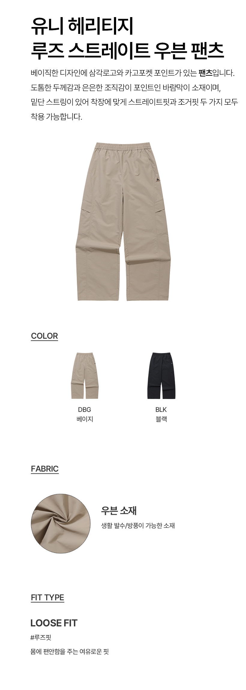 르꼬끄 스포르티브 유니 헤리티지 루즈 스트레이트 우븐 팬츠 - 베이지(QQ323LPT93)