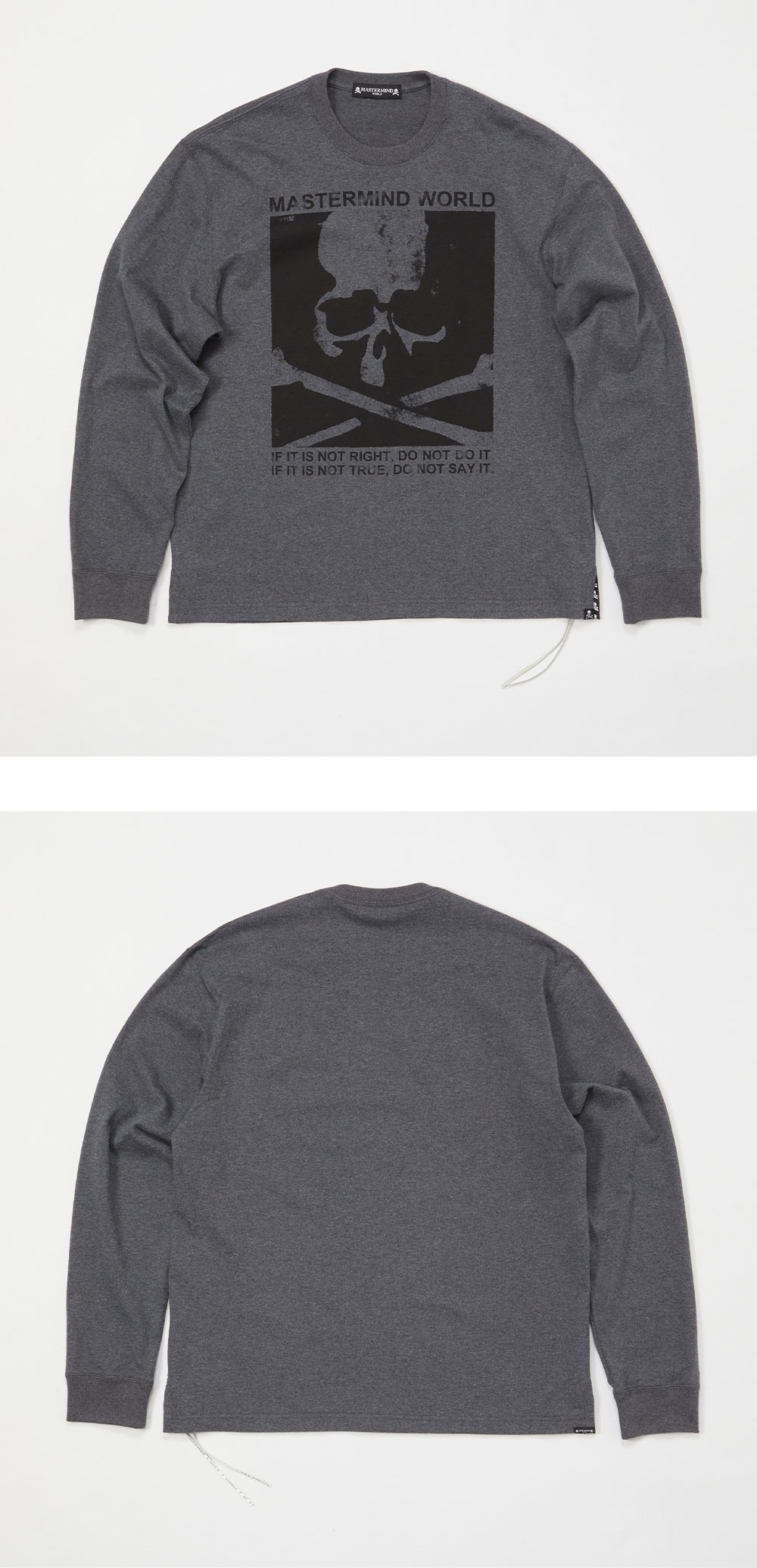 해골 그래픽이 포인트인 마스터마인드 월드 포스터 롱슬리브 티 탑 그레이입니다. - 자체 개발한 하이브리드 코튼 + 탈취 원사 사용 - 다이아몬드 폴리싱 가공을 통해 원단 표면을 부드럽게 연마, 고급스러운 터치감 구현 - 전면에 오리지널 그래픽 프린트로 디자인 포인트를 완성 - 레귤러 핏 실루엣의 롱슬리브 티셔츠