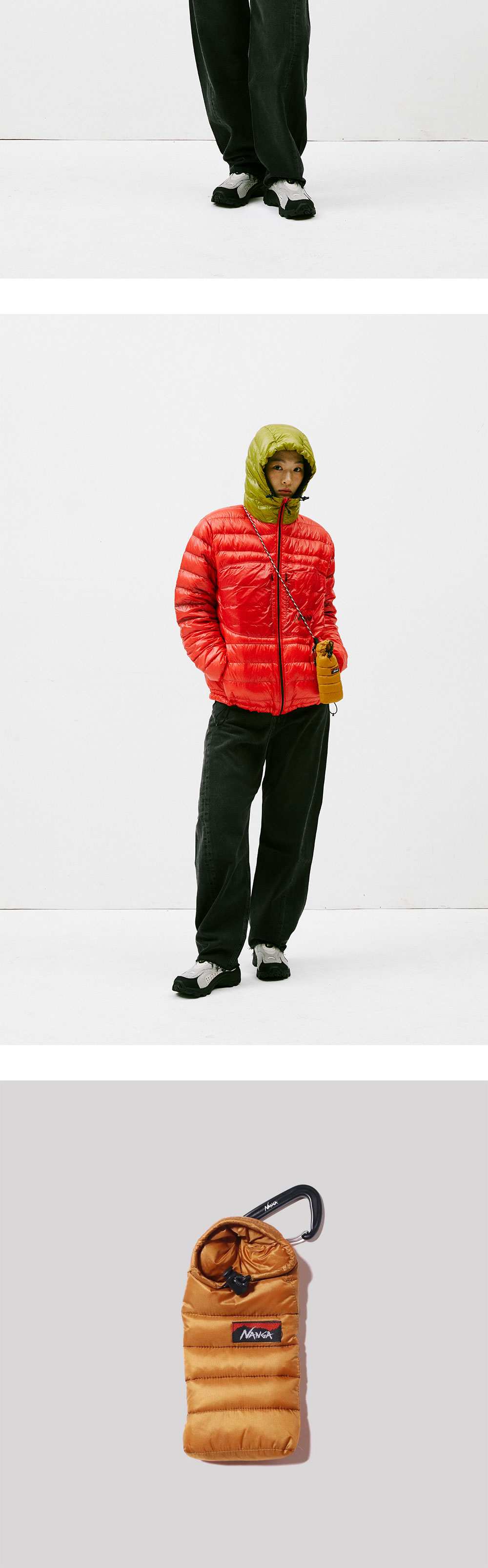 소중한 휴대폰을 위한 미니 침낭, 난가의 폰 케이스입니다. - 동봉된 카라비너로 백팩 등에 체결 가능 - 스트랩 조절 장치 - 초경량(20데니어) 립스탑 나일론 소재 - 덕다운 소재의 안감 - Phone 15 Pro Max(약 W7.76×H15.99cm)까지 수납 가능한 사이즈 - 휴대폰, 선글라스, 악세서리 수납 가능