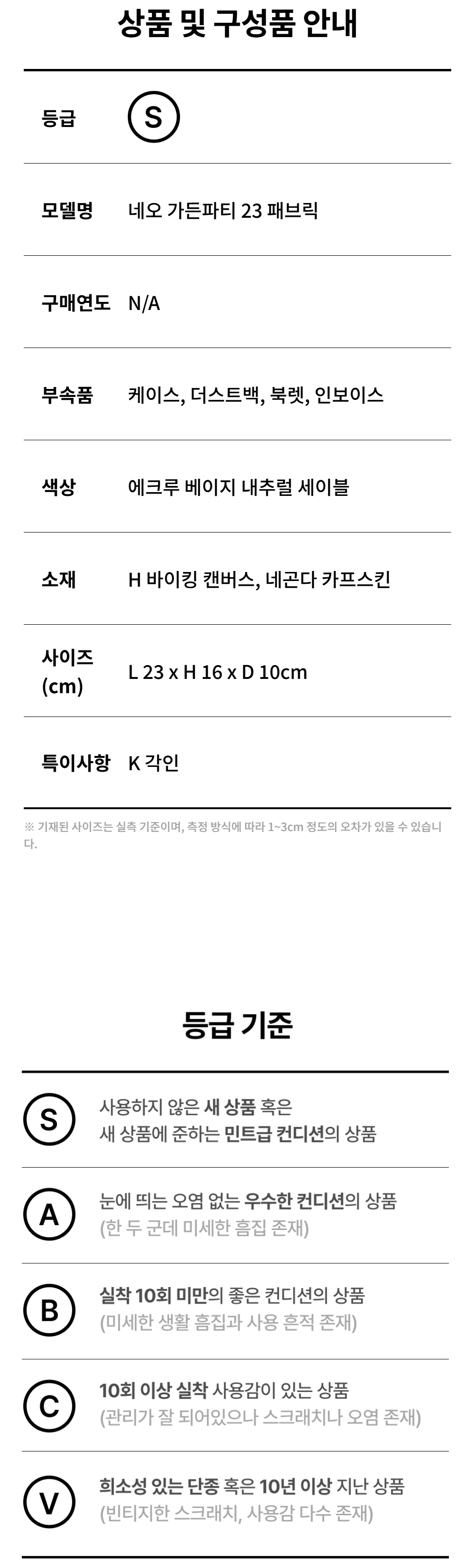 에르메스 네오 가든파티 23 패브릭 에크루 베이지 내추럴 세이블