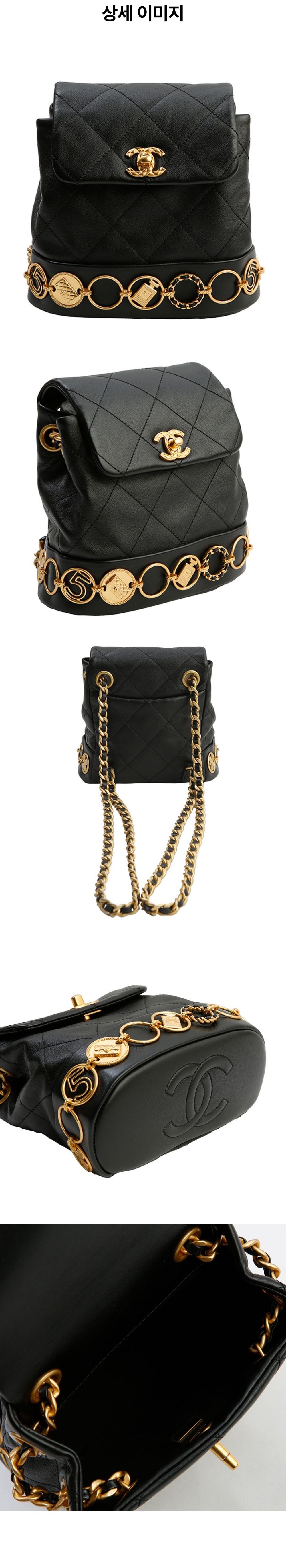 샤넬 심벌즈 코인 디테일 백팩 스몰 블랙 빈티지 골드
