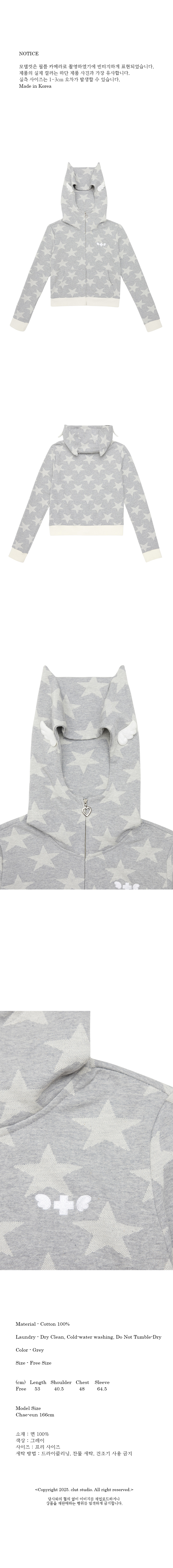 [예약 배송] 클럿 스튜디오 엔젤 오브 스타 윙 집업 후드 그레이