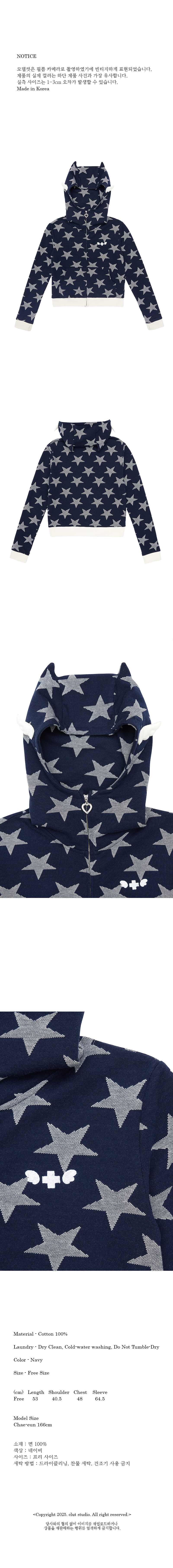 [예약 배송] 클럿 스튜디오 엔젤 오브 스타 윙 집업 후드 네이비