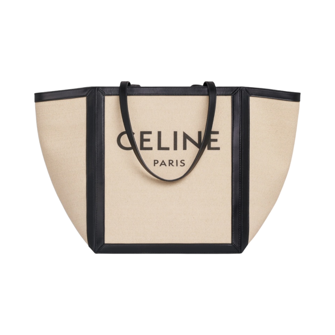 Celine Large Square in Textile with Celine Print and Calfskin Vanilla Black
