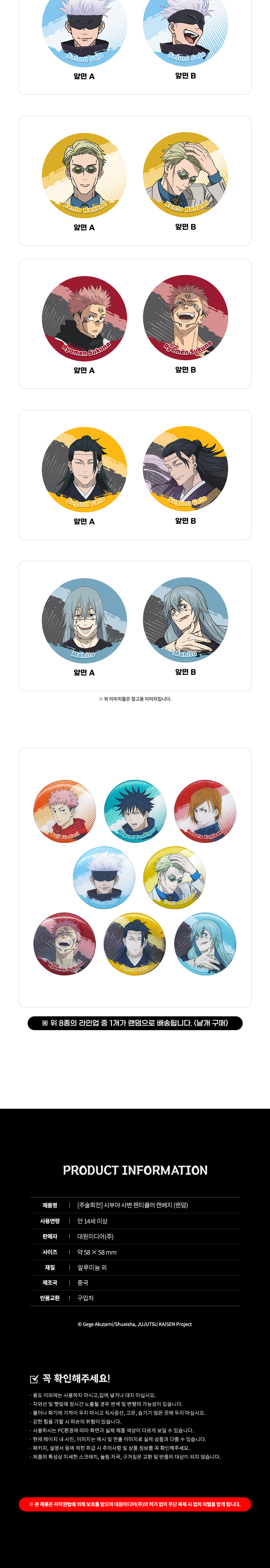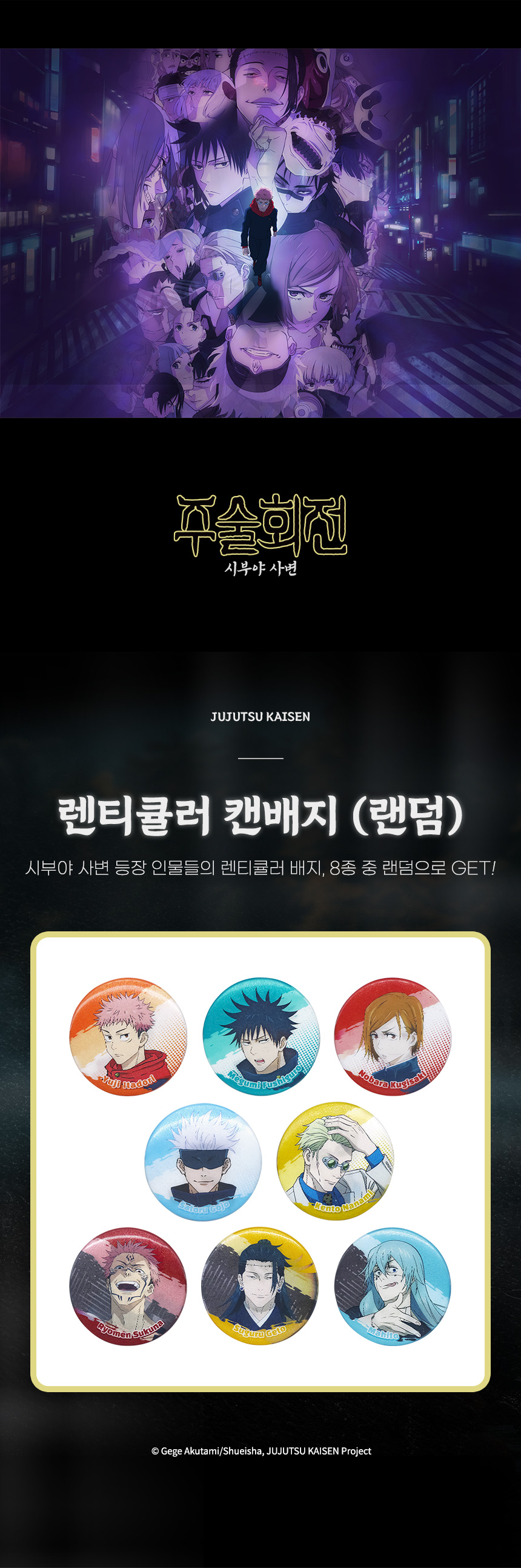 대원미디어 주술회전 시부야 사변 렌티큘러 캔배지 랜덤단품