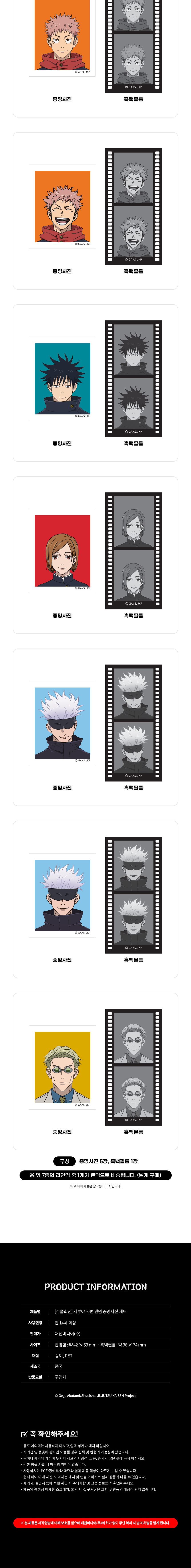 대원미디어 주술회전 시부야 사변 랜덤 증명사진 세트