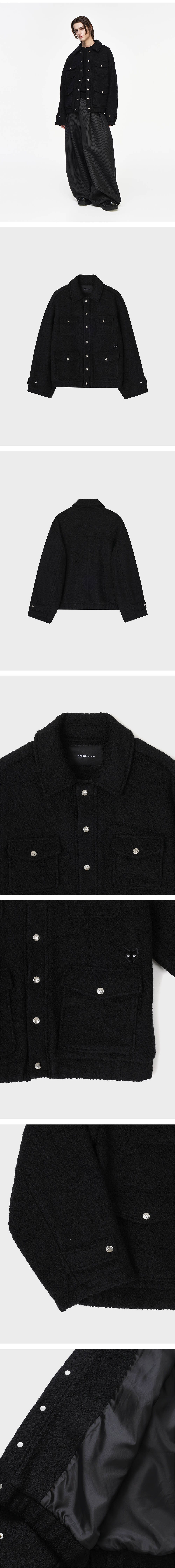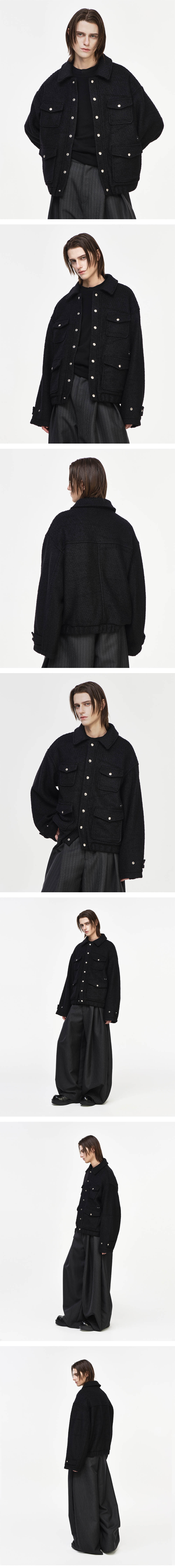 지제로 부클 멀티 포켓 카라넥 자켓 블랙