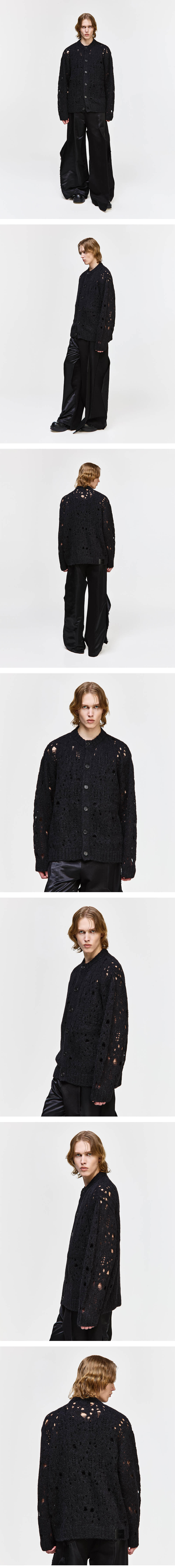 송지오옴므 데바스테이트 라운드넥 가디건 블랙