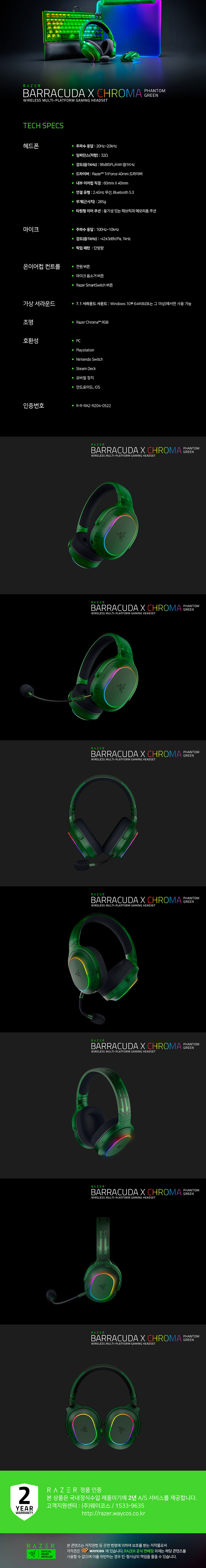 레이저 바라쿠다 X 크로마 팬텀 그린 에디션 게이밍 헤드셋