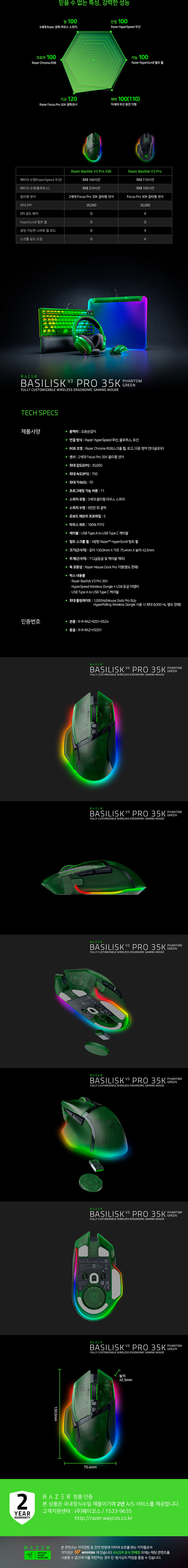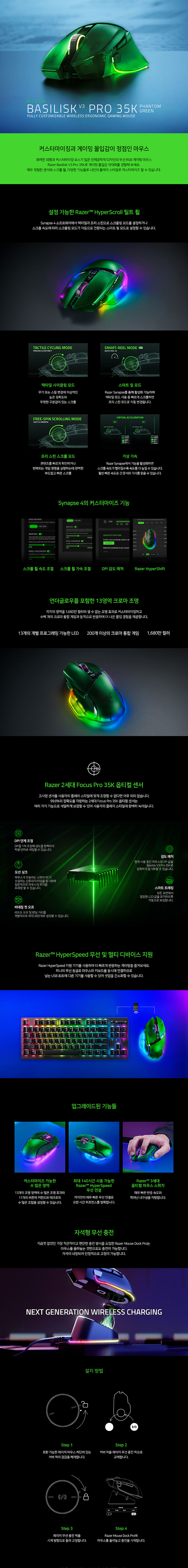 바실리스크 V3 Pro 35K 팬텀 그린 에디션 유무선 게이밍 마우스