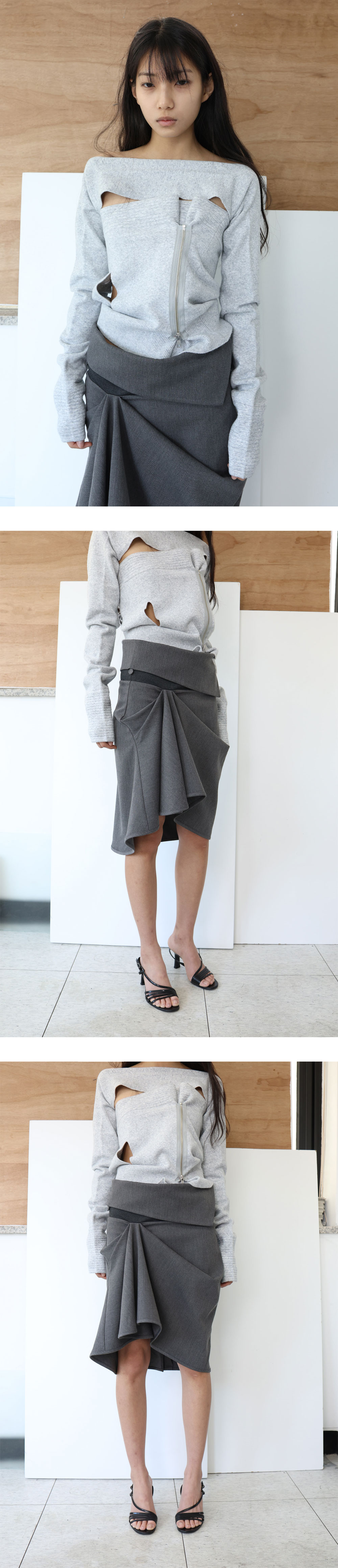 울리카 상투스 우먼 브레이스 언발란스 스커트 차콜 - 25FW