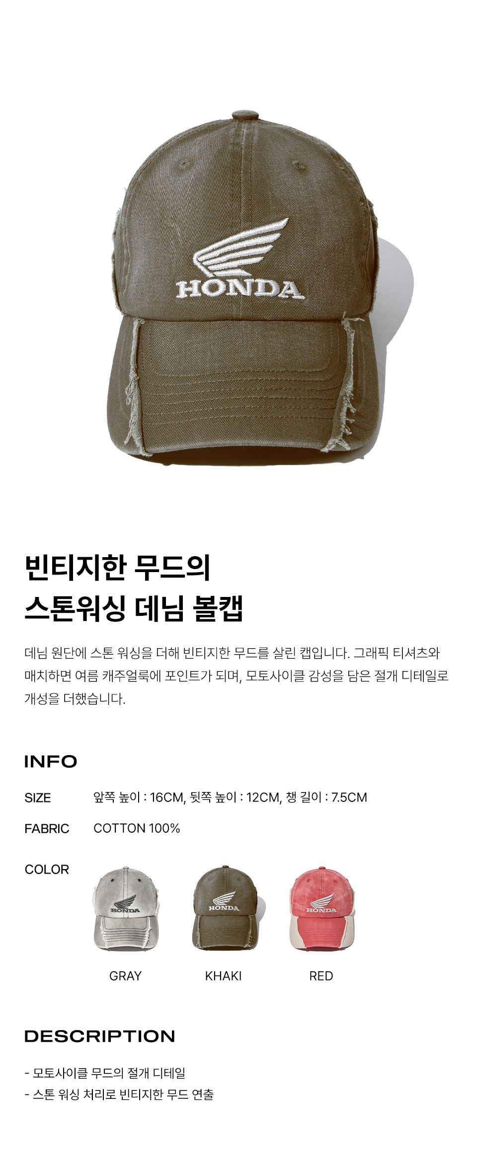 혼다 빈티지 컷오프 캡 카키