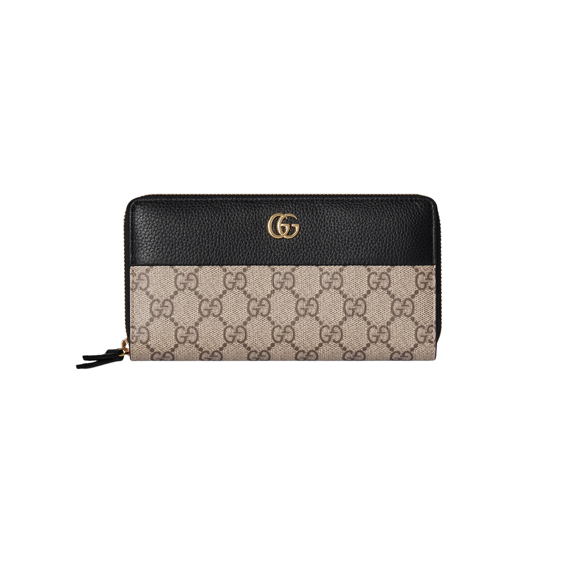 구찌 GG 마몽 바이컬러 집 어라운드 월렛 베이지 블랙 레더