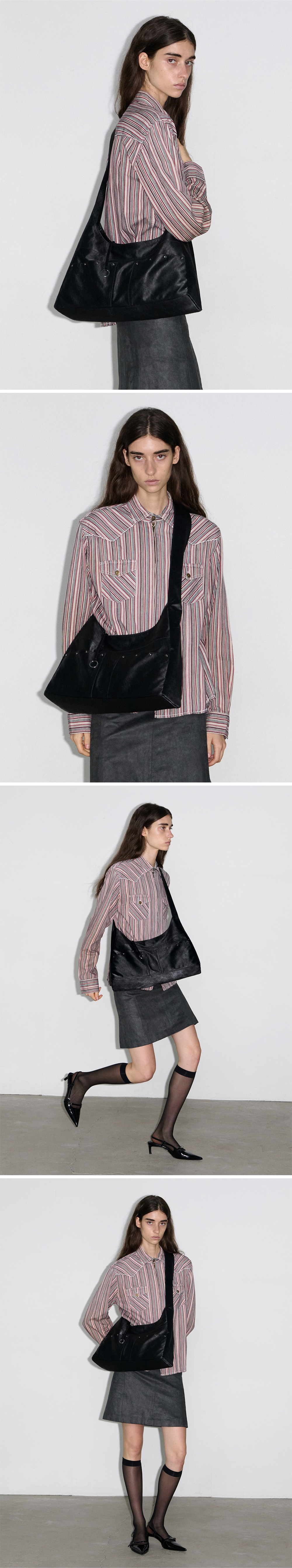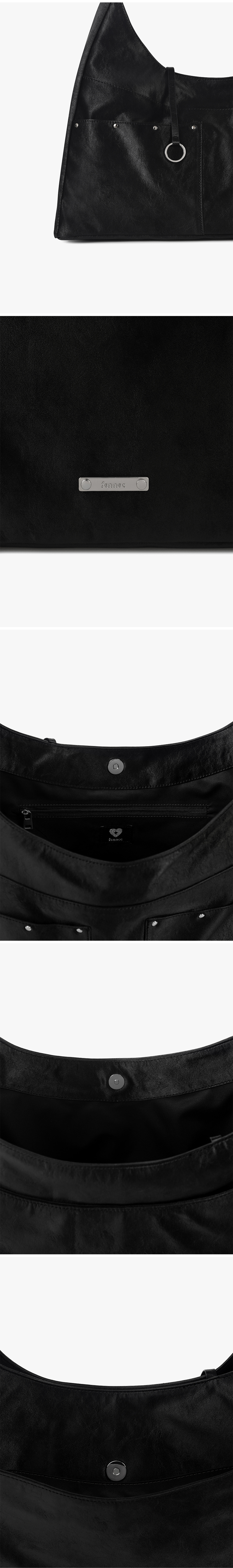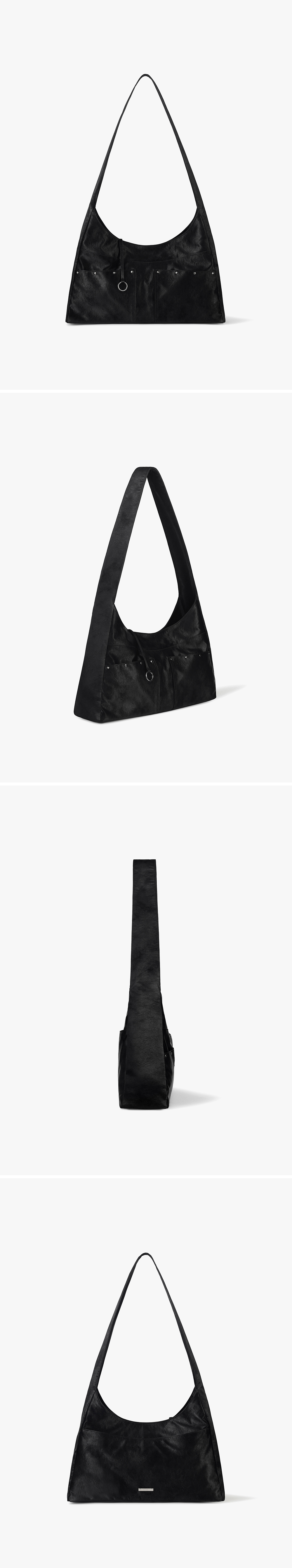 - 스터드가 포인트인 투 포켓 호보백 - 14인치 이하 노트북 수납 가능 - 은은한 광택감의 PU소재 사용 - 키링을 달 수 있는 O링 스트랩 디테일 - 외부 오픈 포켓 3, 내부 지퍼 포켓 1 - 메탈 로고 장식 포인트