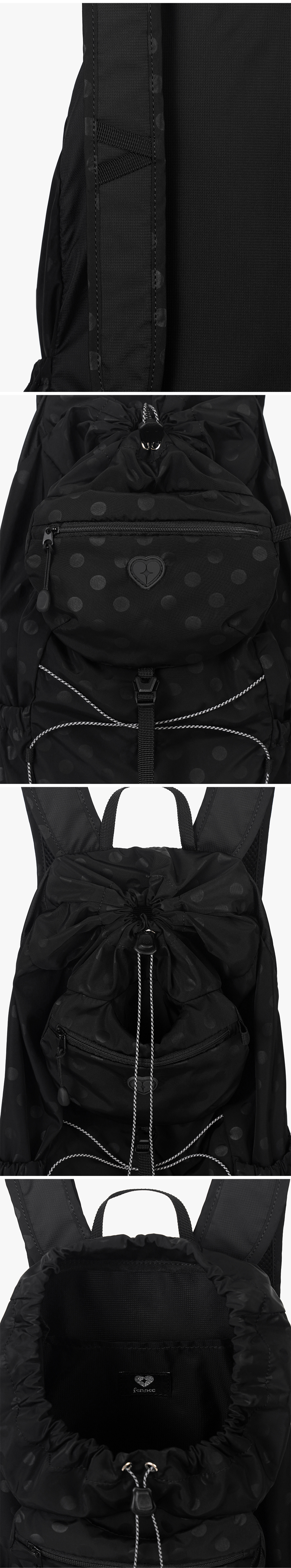 - 은은한 도트 프린트가 포인트인 가벼운 무게감의 실용적인 백팩 - 에어쿠션이 내장된 어깨 스트랩 사용 - 외부 지퍼 포켓 1, 사이드 포켓 2, 내부 포켓 1 - 실리콘 Hearty 로고 라벨 포인트