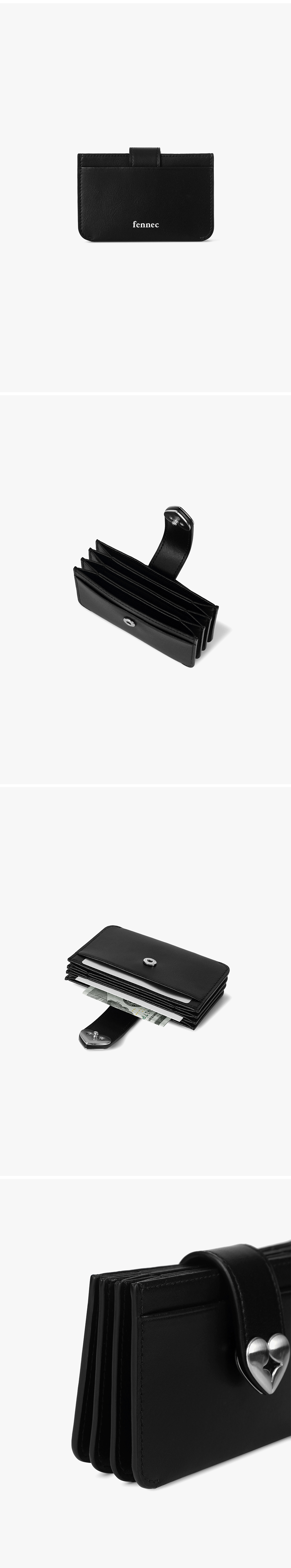 - 매트한 질감의 탄탄한 소가죽 사용 - 하트 로고 장식이 포인트 - 4칸의 아코디언 칸으로 분리 수납 가능 - 내부 카드칸 4, 외부 카드칸 2