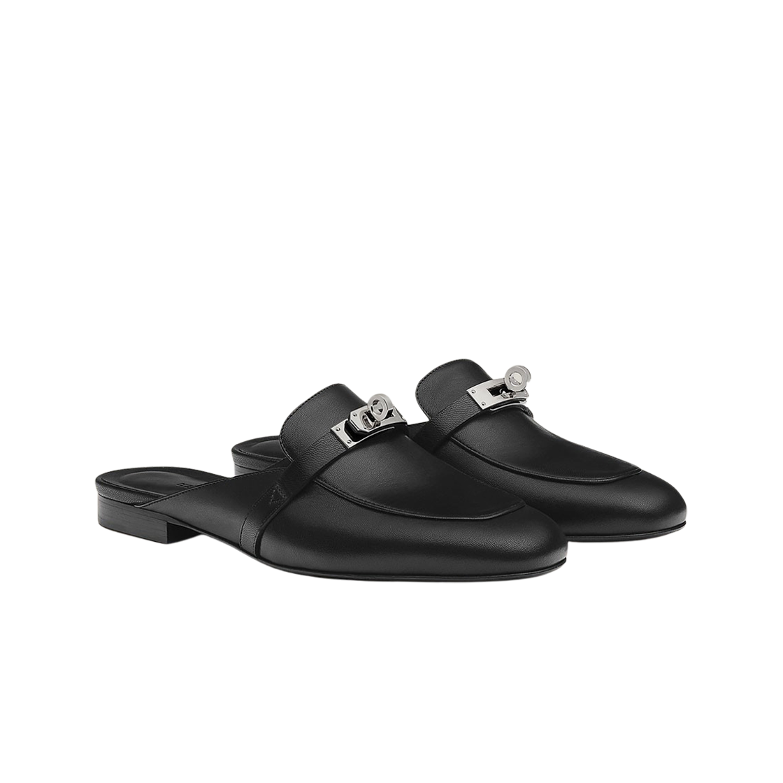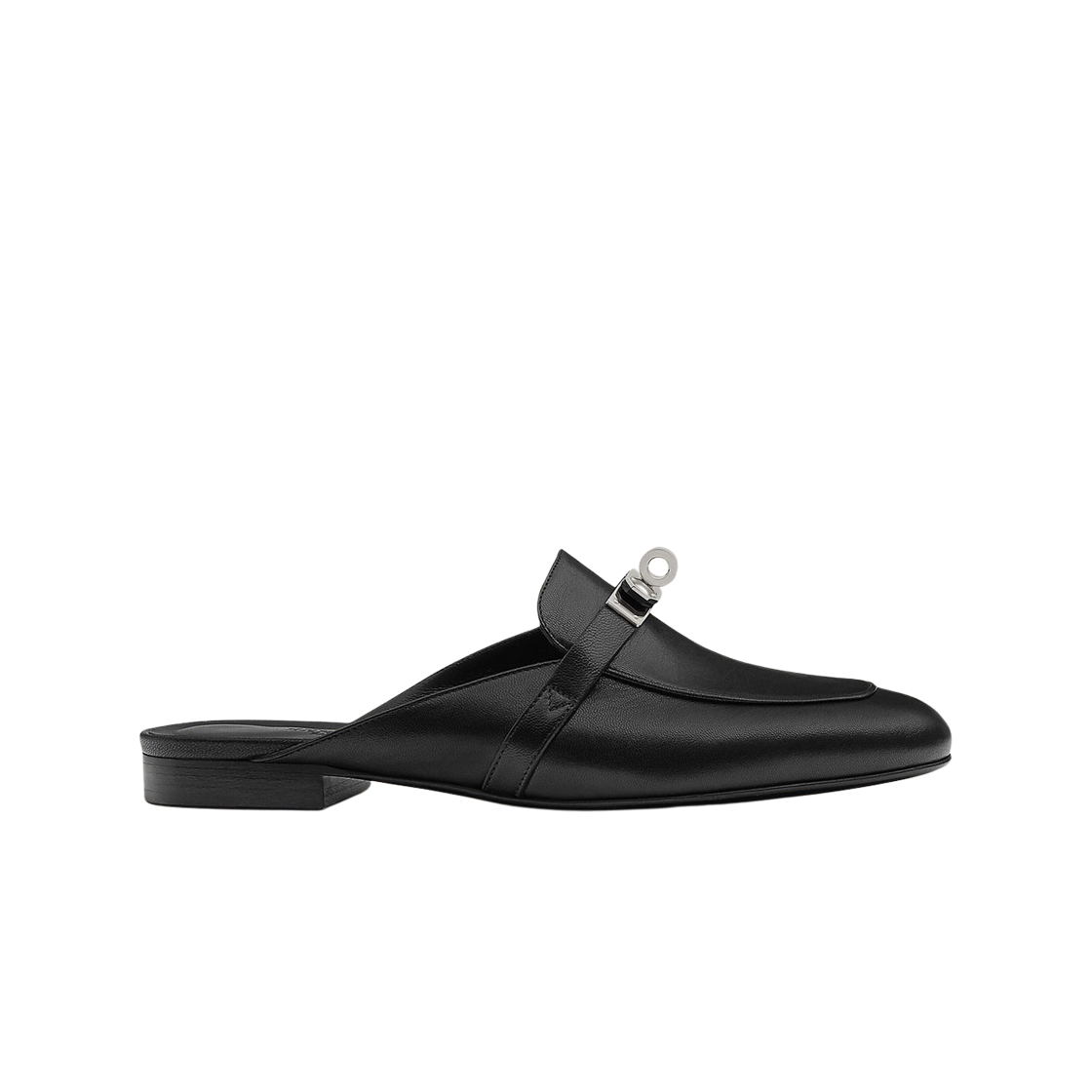 (W) Hermes Oz Mule Goatskin & Palladium Noir