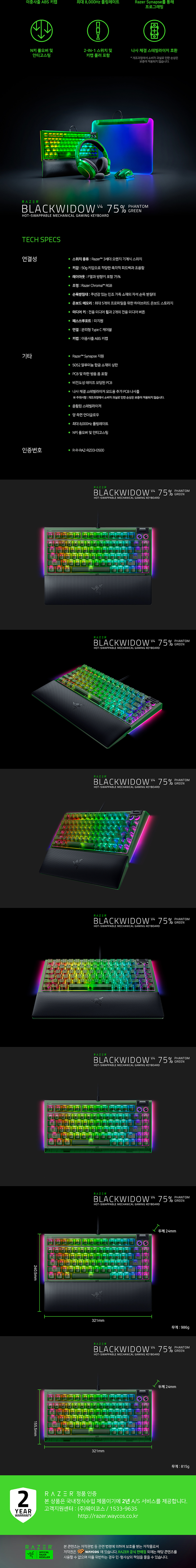 레이저 블랙위도우 V4 75% 팬텀 그린 에디션