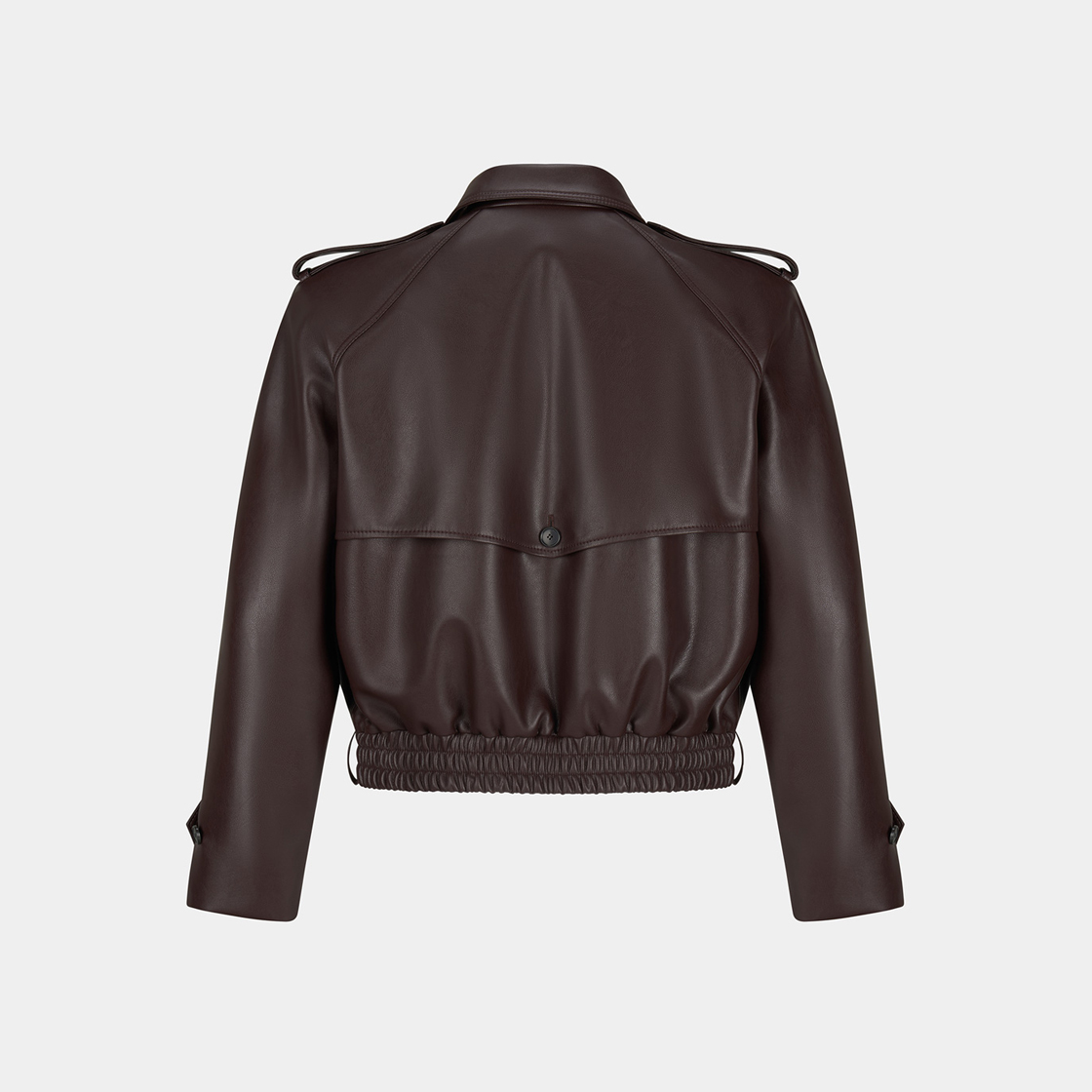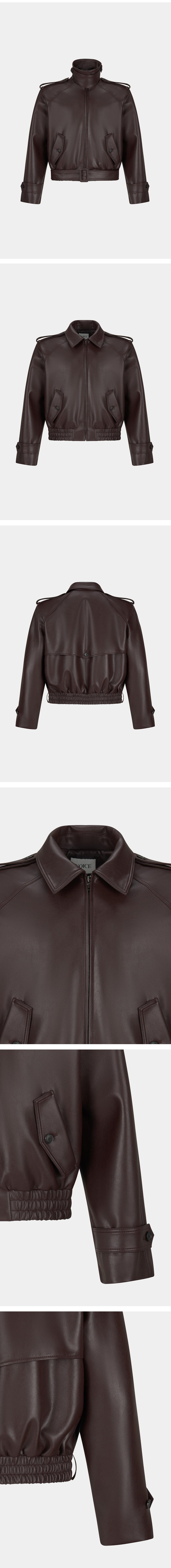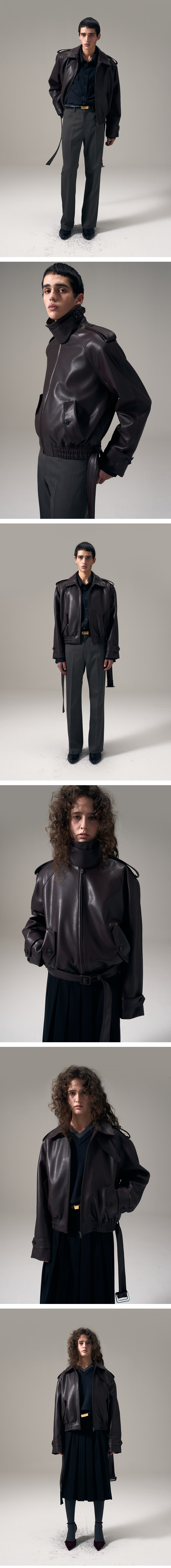 숄더 견장과 소매 스트랩, 등판의 요크 디테일로 입체적인 실루엣을 완성하는 FAUX LEATHER 블루종입니다. 탈부착 가능한 네크 비죠와 밑단 벨트 디테일로 다양한 스타일링이 가능합니다. 구조적인 어깨 실루엣이 특징입니다.