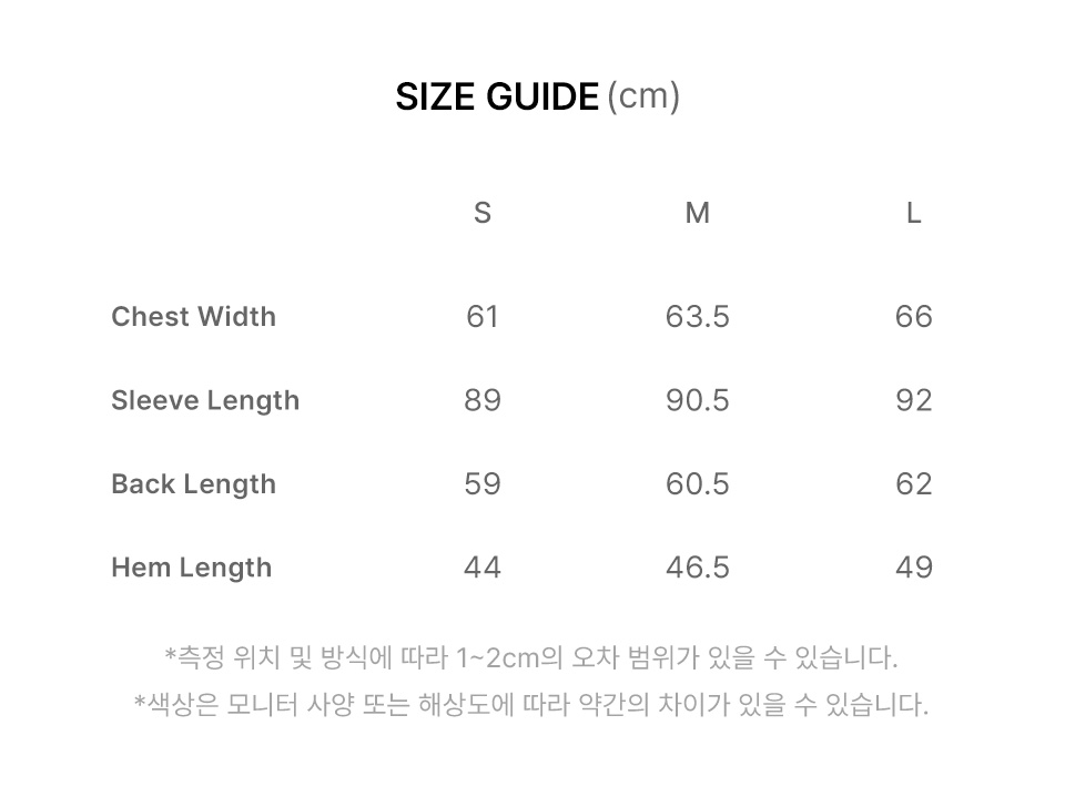 측정 방법에 따라 사이즈에 일부 오차가 있을 수 있습니다.