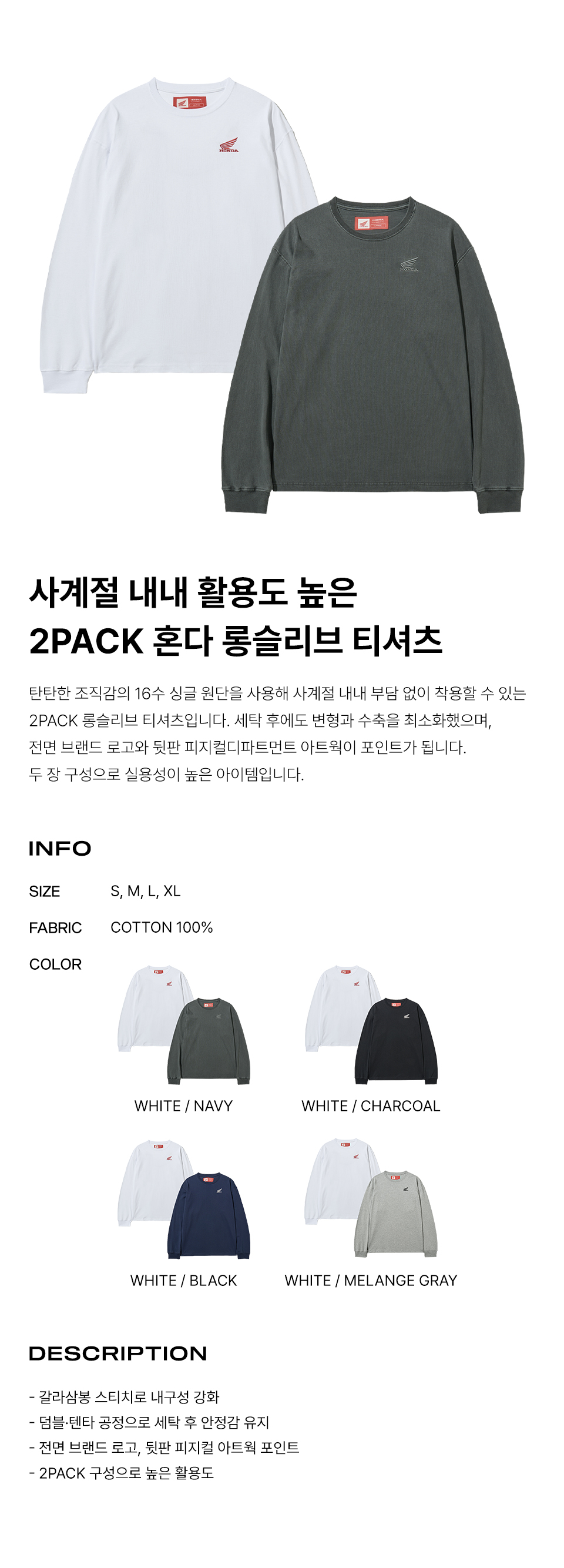 혼다 2Pack 오리지널 윙 로고 롱슬리브 화이트/차콜