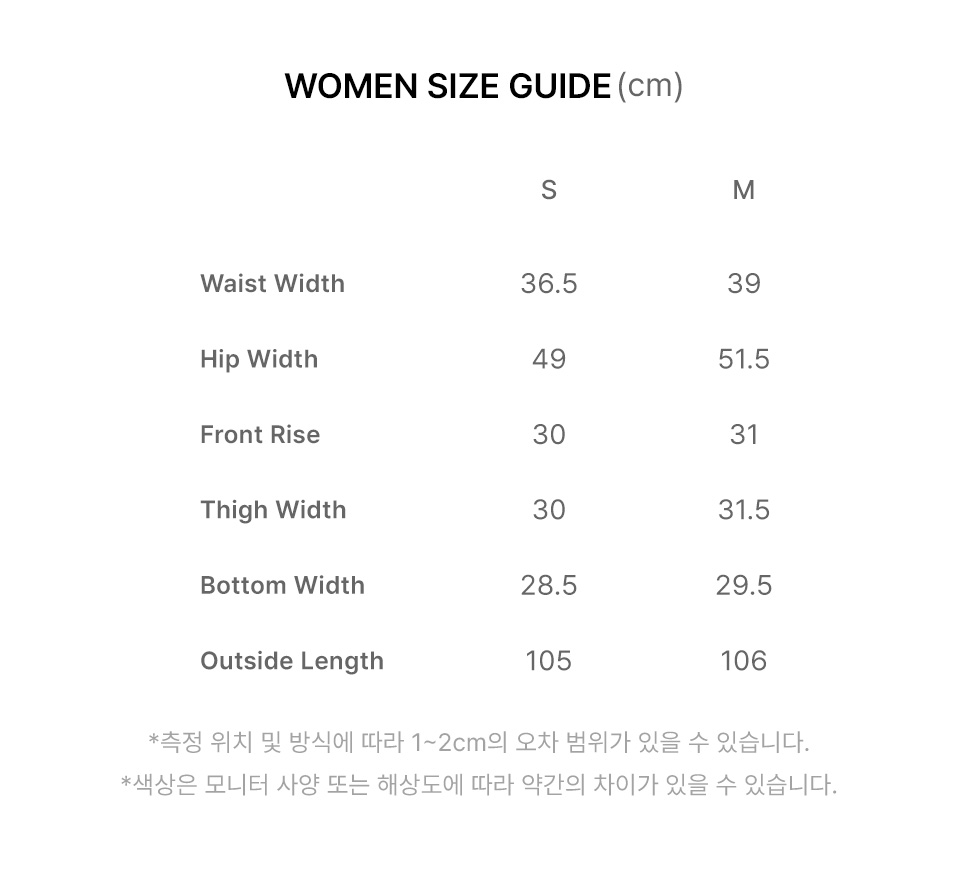 | 허리단면 | 힙단면 | 밑위 | 허벅지단면 | 밑단단면 | 총기장 |