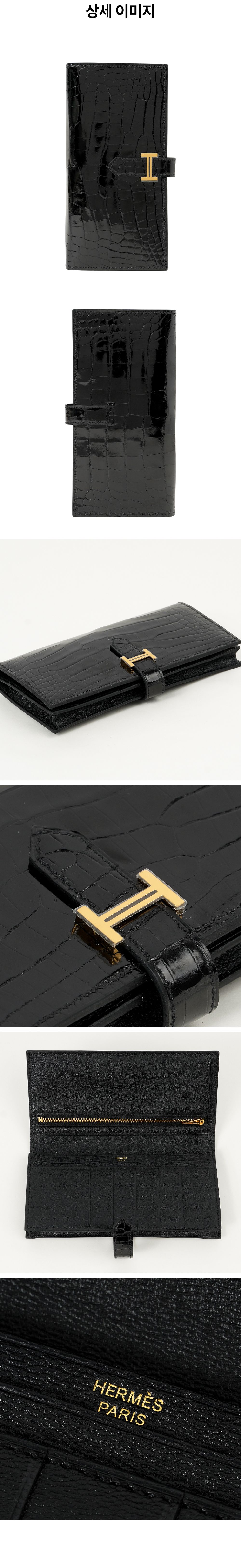 에르메스 베안 장지갑 리쎄 엘리게이터 리쎄 엘리게이터 블랙 금장