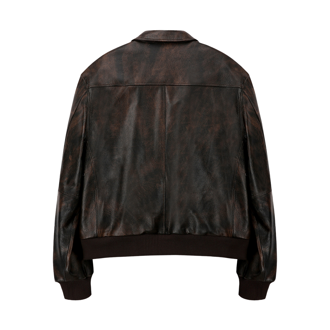 Tonywack Goat Leather Vintage Treatment Aviator Jacket Dark Brown