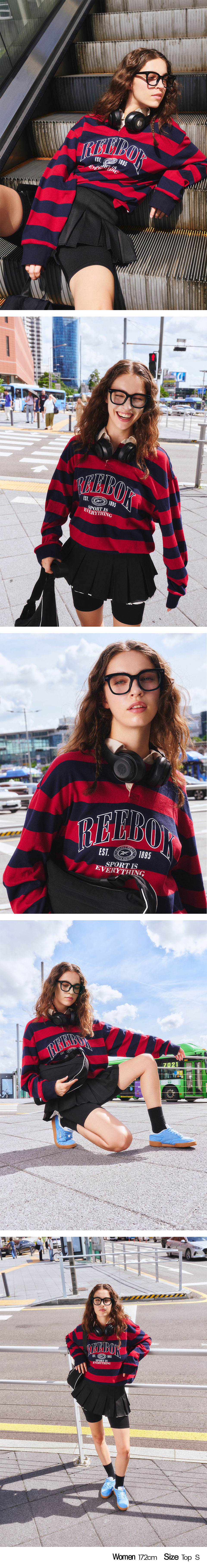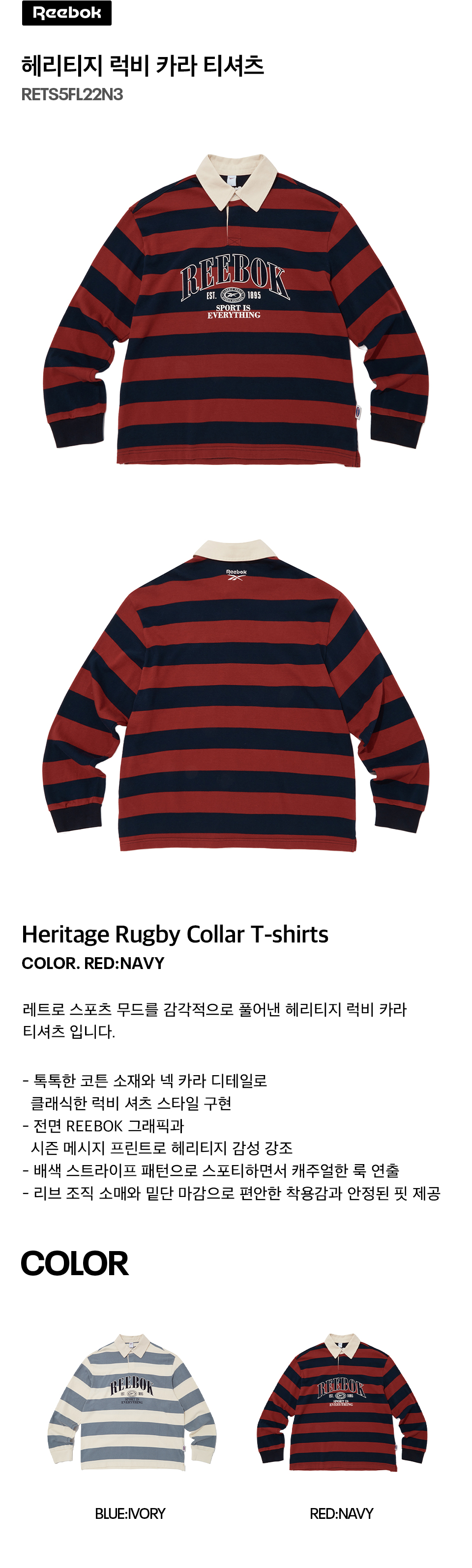 리복 헤리티지 럭비 카라 티셔츠 레드 네이비