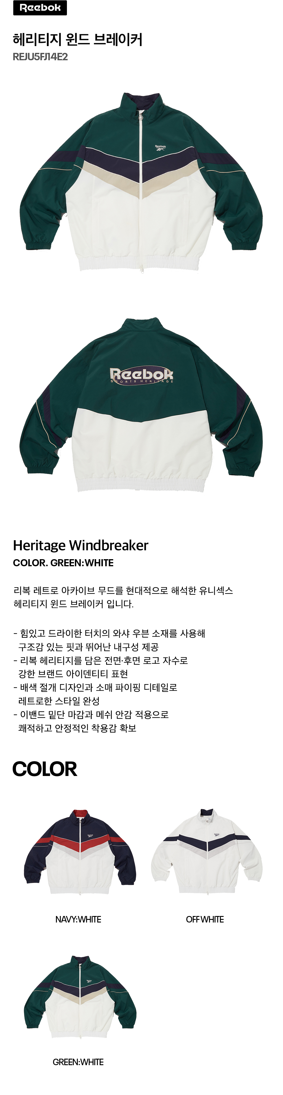 리복 헤리티지 윈드 브레이커 그린 화이트